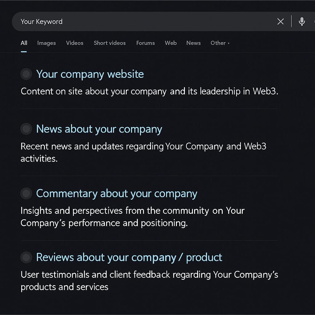 We rank our clients for high-intent Web3 keywords that drive meaningful traffic and discovery.